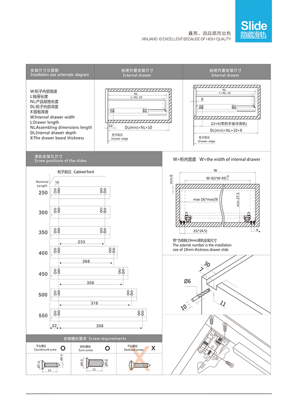 [European hidden steel ball slide] XL-105底装
